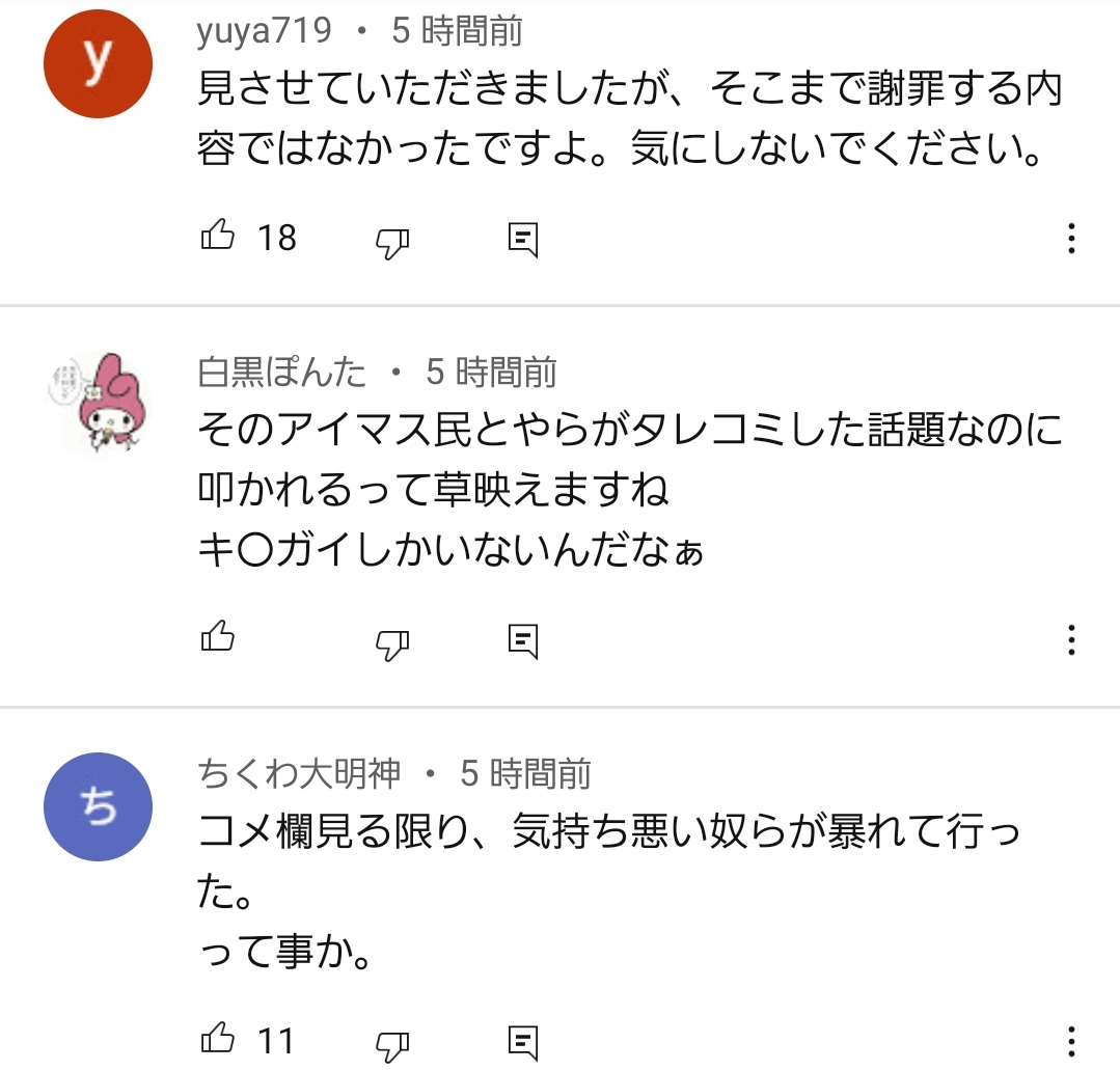 これに対し世間からはアイマスファンを叩く声が集まる