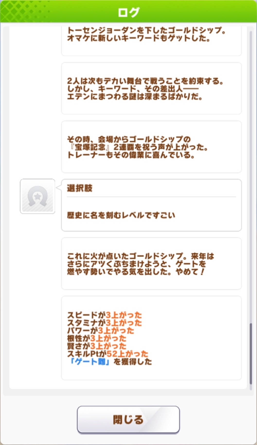 終盤にメジロ家の用事とか行って遂にリストラかと思ったらすぐ戻ってきて草生えたわ