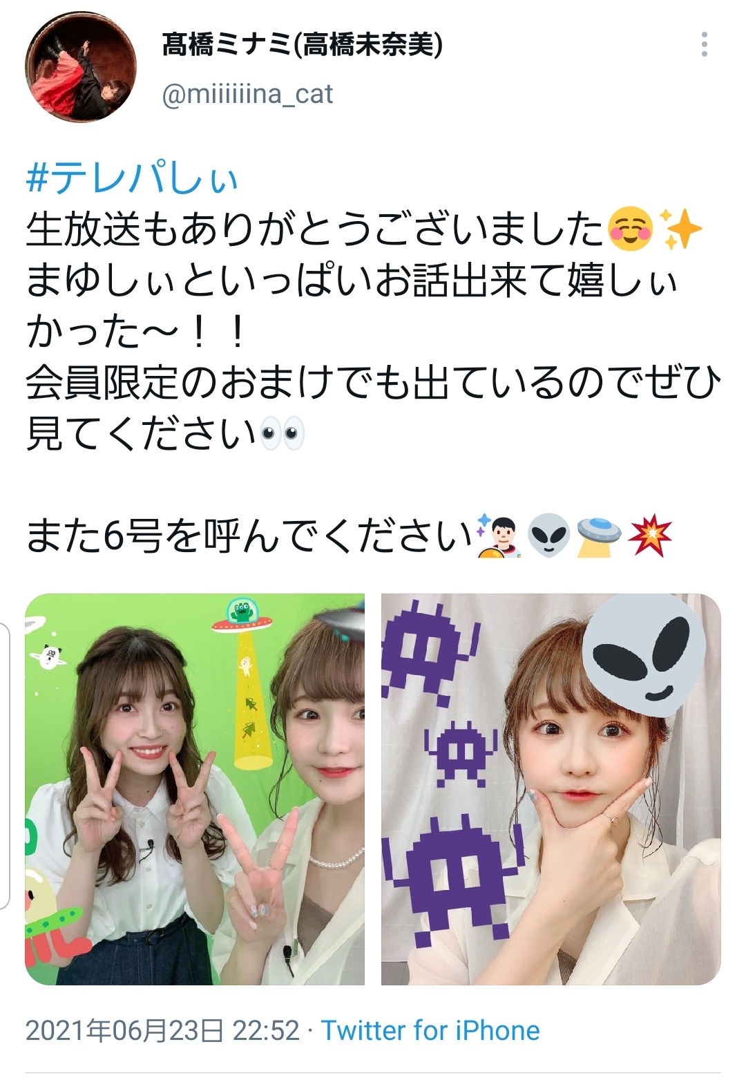 — 髙橋ミナミ(高橋未奈美) (@miiiiiina_cat) June 24, 2021