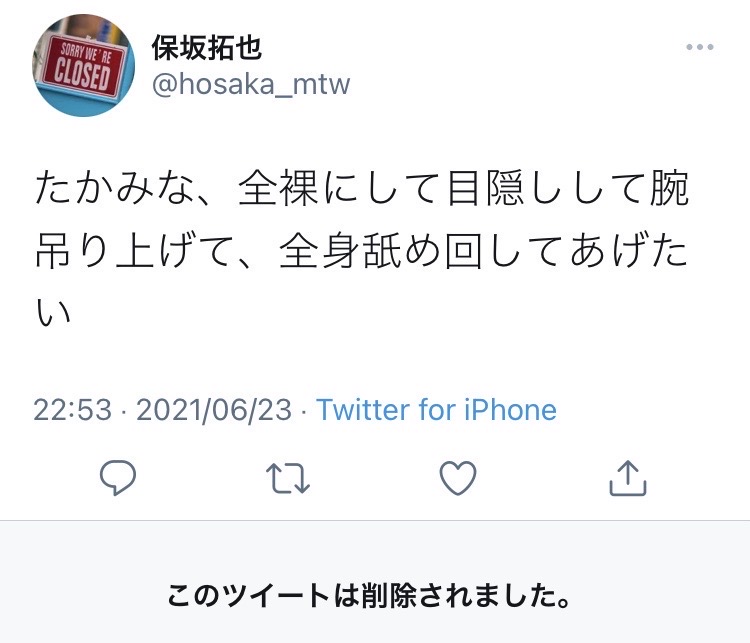 昨夜投下されたセクハラのようなツイート(即削除された)