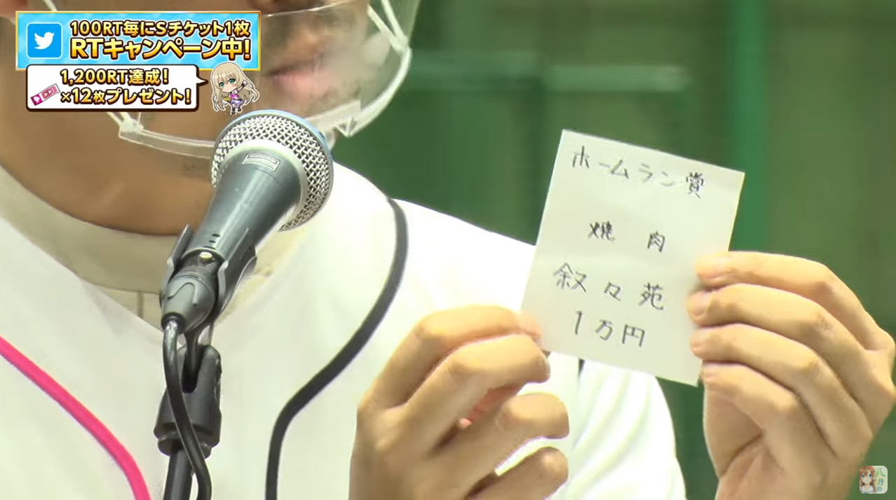 若月ホームラン記念に焼き肉券を贈呈するハチナイ運営草生えたわ