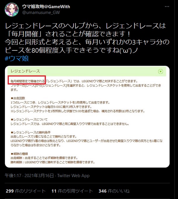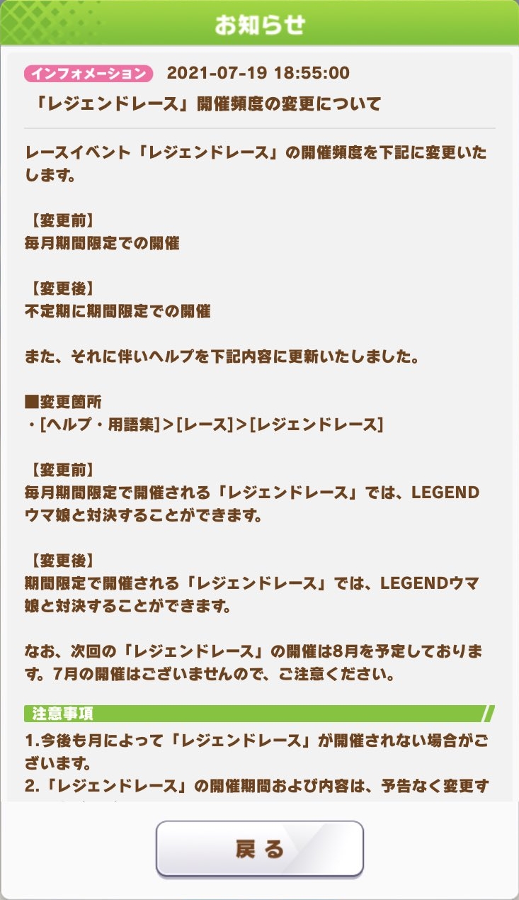 チャンミ毎月開催はさすがにきついしどっかで無くすやろwレジェンドレースで戦力アップもしたいしな