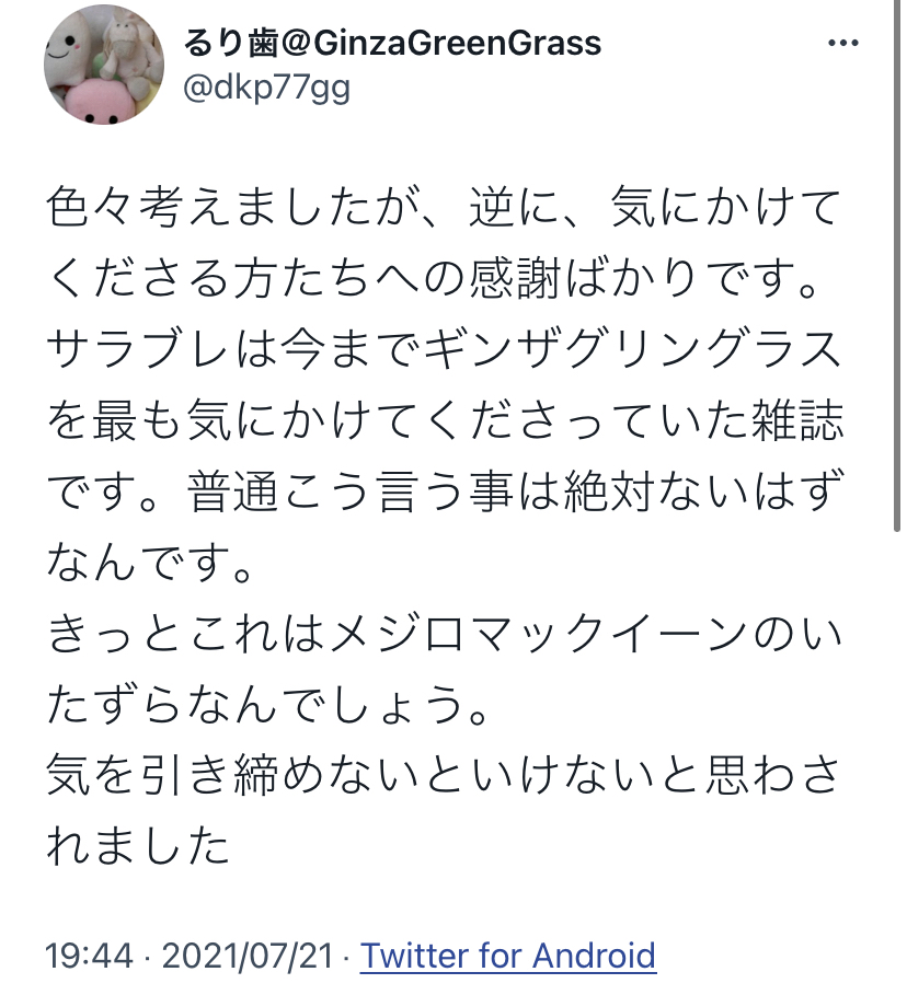 今私たちができるのはギンザグリングラスを応援することだと思います... https://t.co/TwxFj71fXS