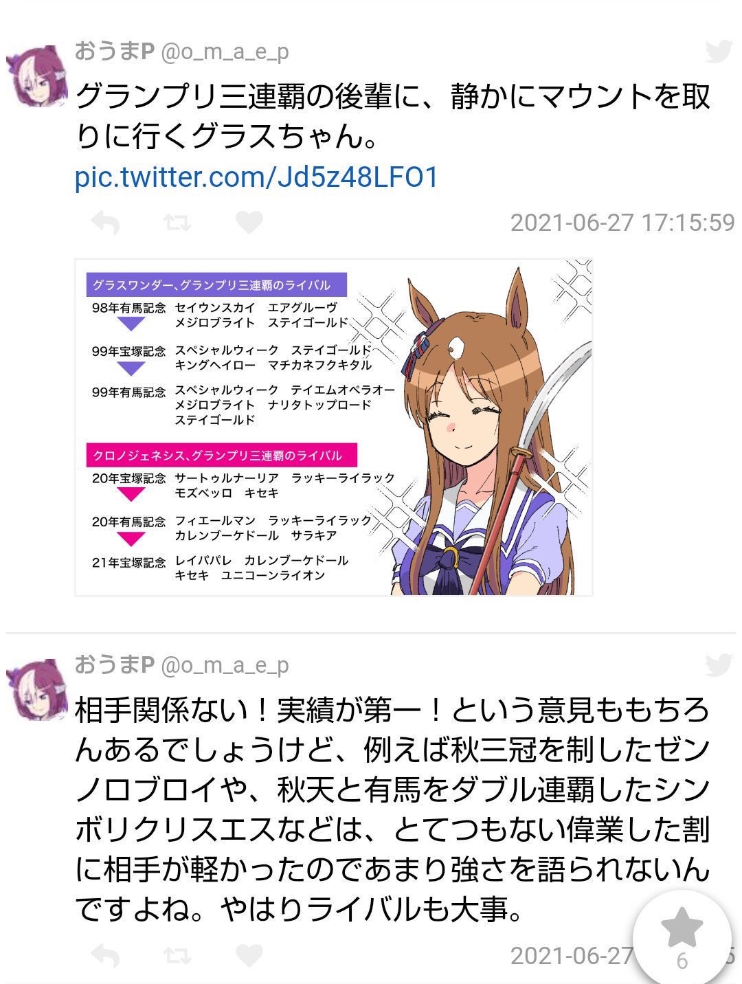 ウマ娘やってなくても、競馬の文字が目につくと久々にやってみよっかなーってのとかも含めて結構掘り起こしとるやろ