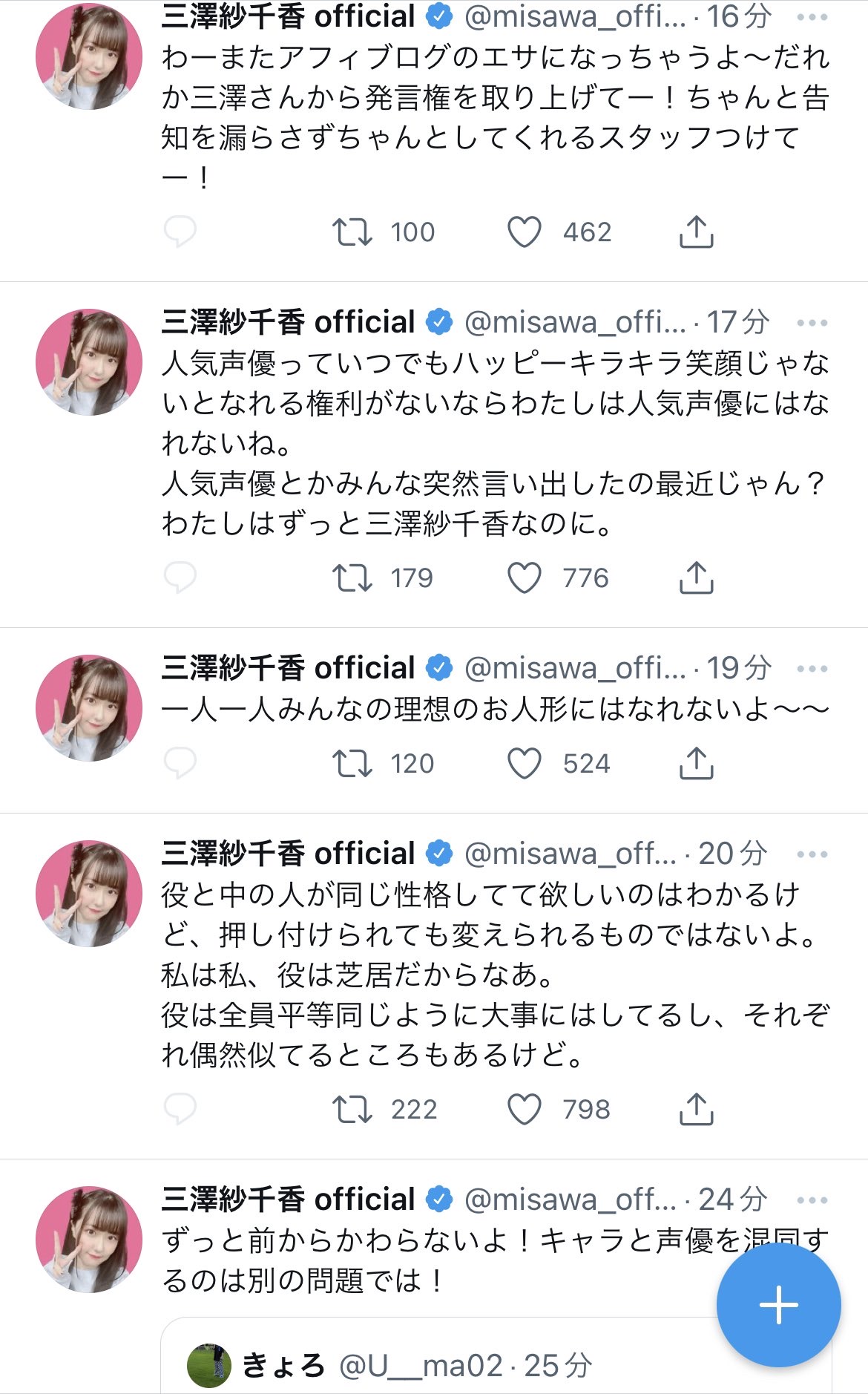 釘宮のTwitterの文体毎回可愛くて草生える