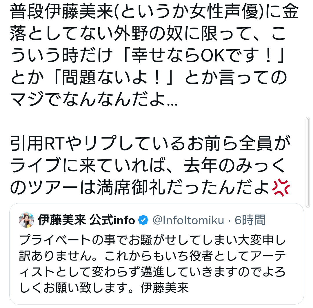 ドル売り声優は相手できると表では祝福されるけど数字は露骨に減るからな