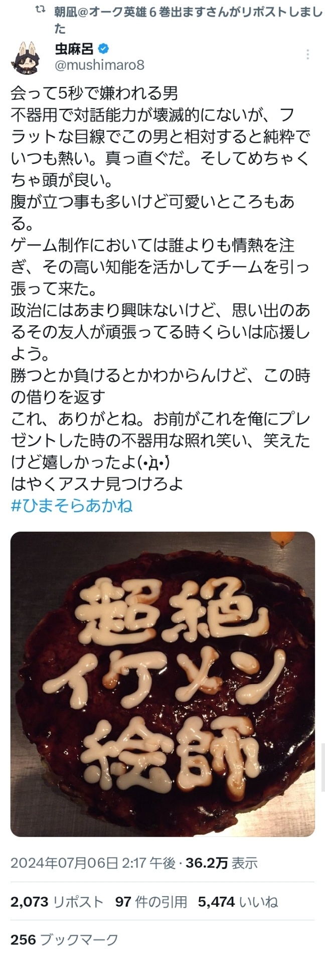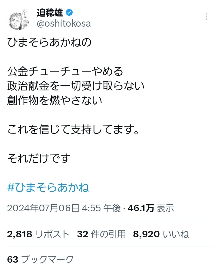 ひまそらさんが救ってくれている文化には俺の関わる漫画も含まれている