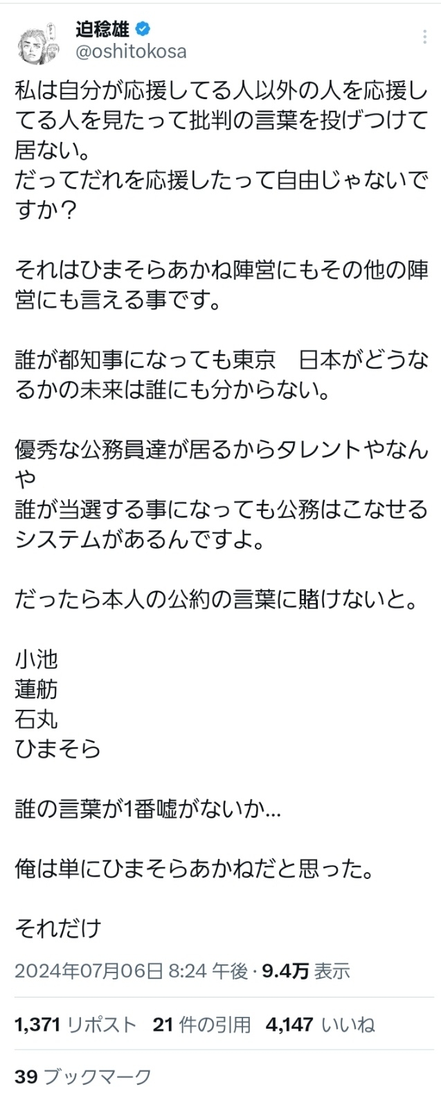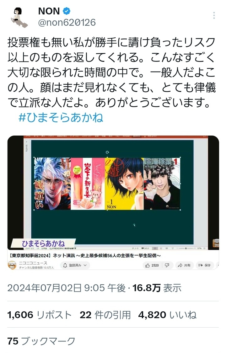 そんな、ひまそらあかねが都知事選に出馬した。
