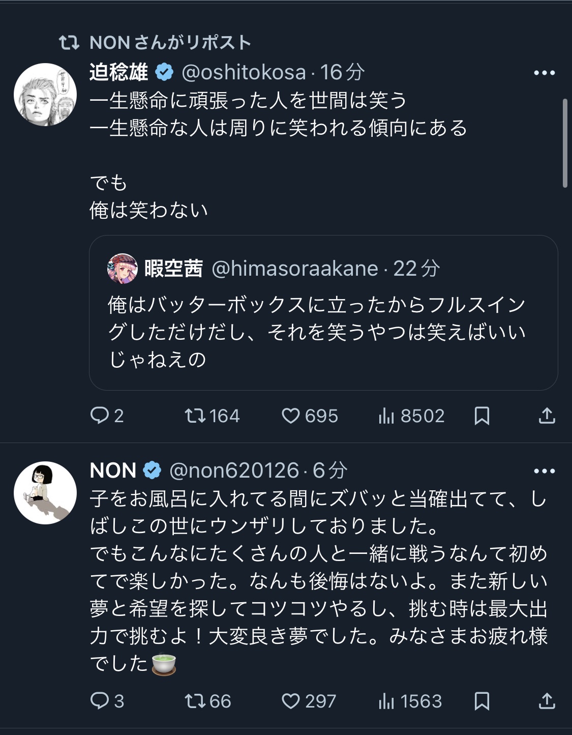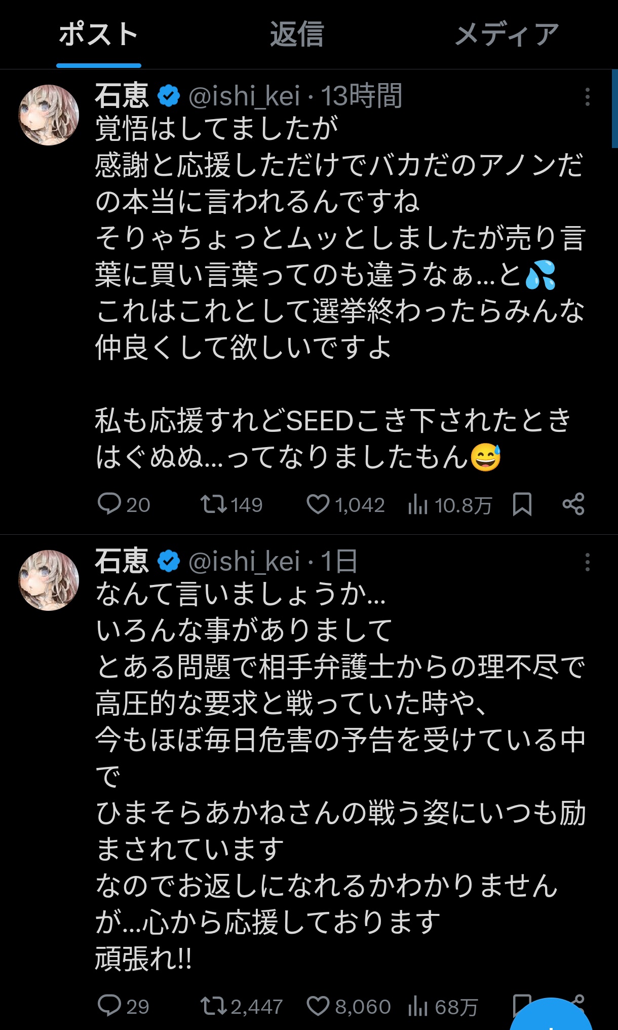 できなくなっても仕方がないという思いでポストしています