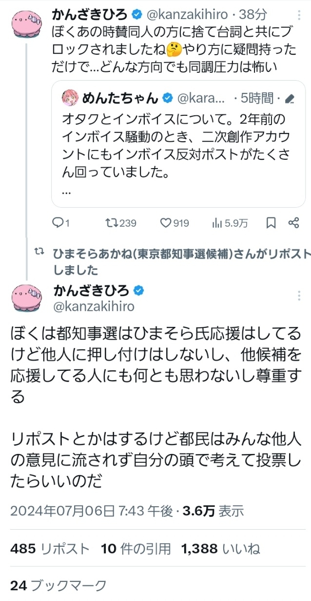 まぁ、たぬかなも暇空支持やしな。