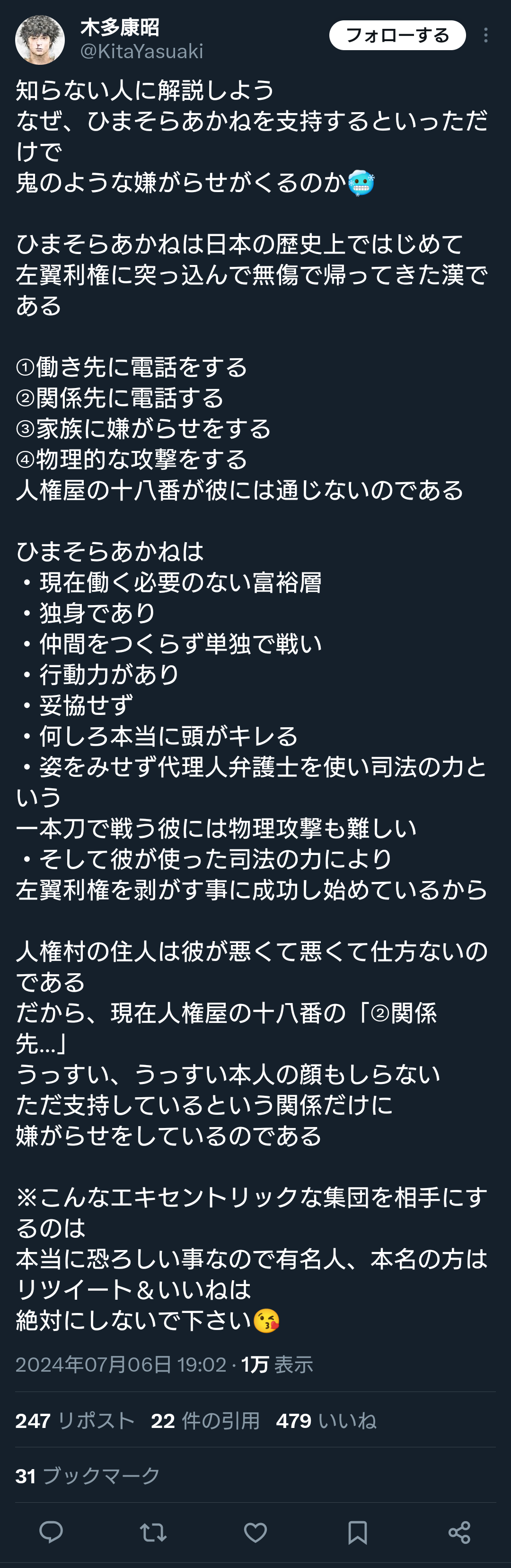 覚悟してポストしている。