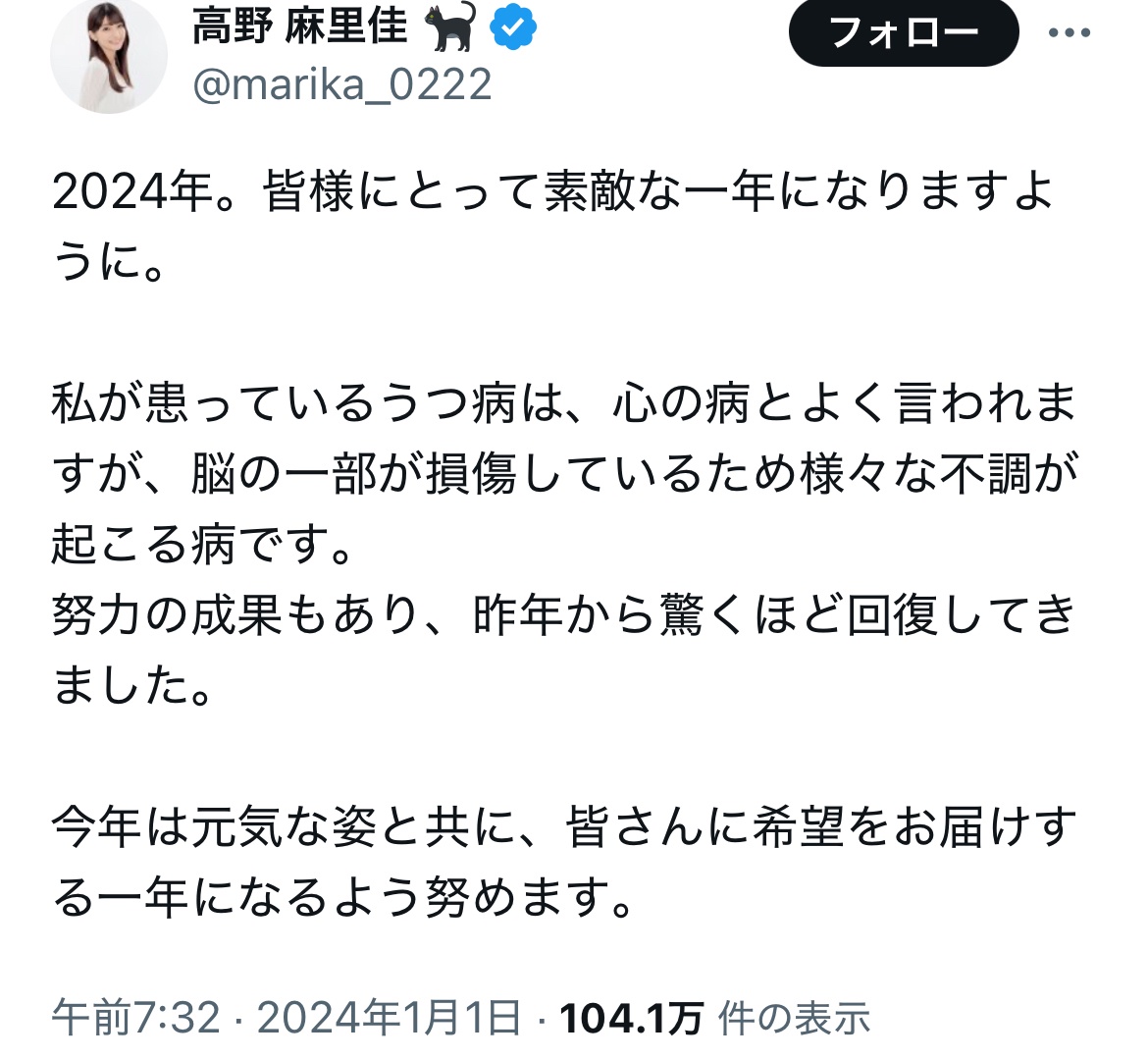 — 高野 麻里佳 🐈⬛ (@marika_0222) January 21, 2025