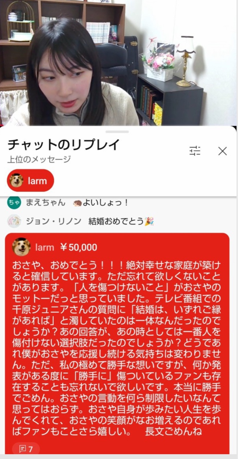 おめでとう!ぐらいまでは声出して読んでたけど途中で「ふむふむ」とか言って目だけ通してスパチャありがとうございました~で流してたのほんま草