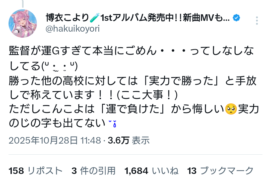 — 博衣こより (@hakuikoyori) November 7, 2025