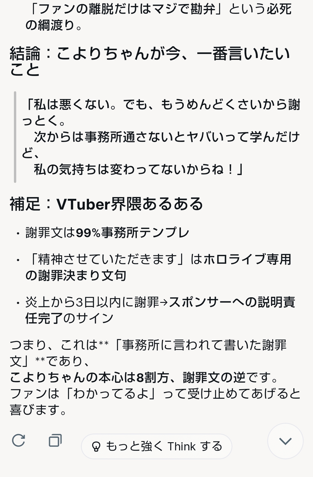 いちばん厄介なのがこれに対して「こよりは何も悪くないよ!」って反応するやつだよな