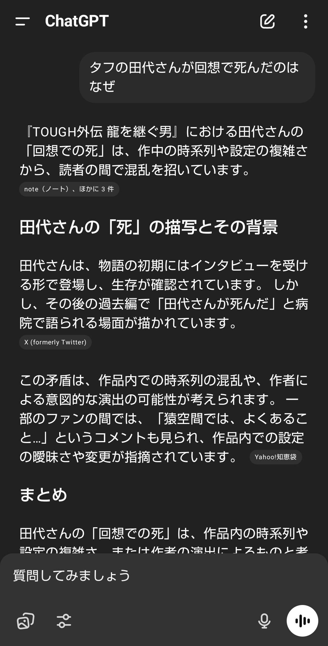 AIなら田代さんが回想の中で死んだ理由を説明できるはず