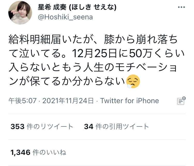 アイマス声優の星希成奏さん、「給料が少ない」と膝から崩れ落ちて泣いてしまう